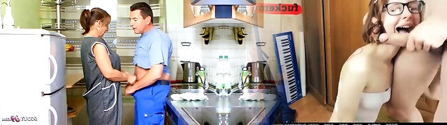 German Vintage - Super Hot Mature Seduces Worker to Fuck in kitchen