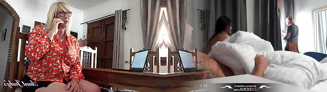 Nerdy blonde in glasses gets intimate with her perverted step father