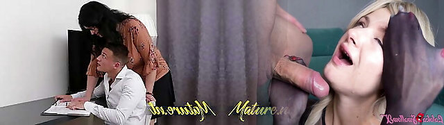 TUTOR4K. Funny student fucked married mature teacher in white stockings