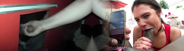 Her Third Gloryhole hot brunette gargling a small dick