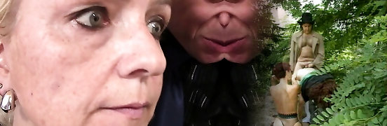 Exhibitionist grandmother shamelessly fucks in public
