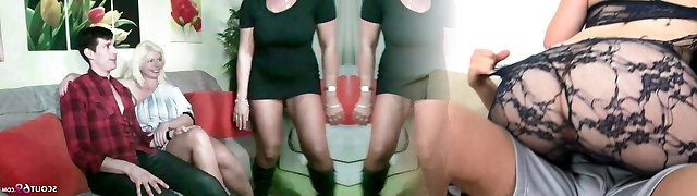 Hot mature group sex - Busty mom and grandmas sharing young