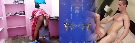 Aunty was searching for a fallen mango in the kitchen and I went behind her and seized her rear and gobbled her vagina wit