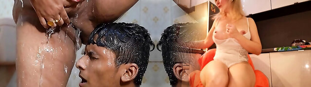 My stepmom gives me a blow-job in the kitchen