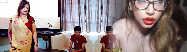 Sexy maa apne dono cherry 18+ bacho ko fuckfest karna sikhati hai