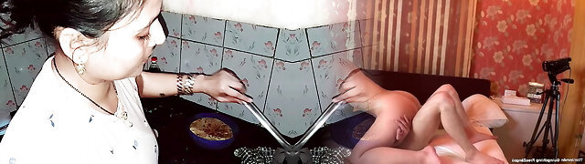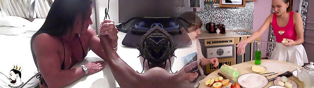 Thick Plus-size whore eats ass and penetrates anally in the kitchen