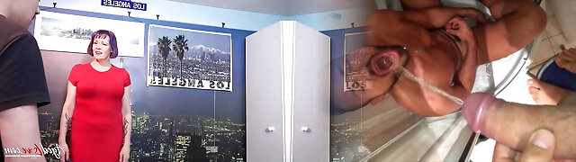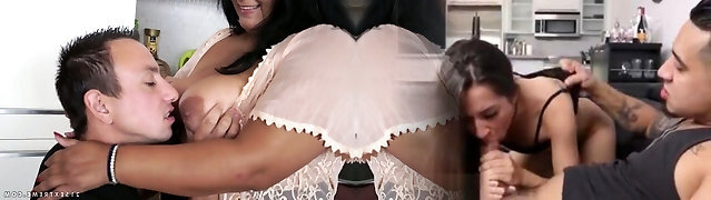 Kitchen Bang of Chubby German Milf with huge busty Tits Fucked and Chreampie by young Fellows in Pussy after deep throating my Dick
