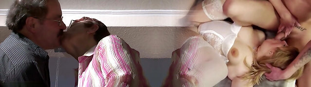 Perverted filthy senior whore with saggy tits Hettie gives BJ and rides dick