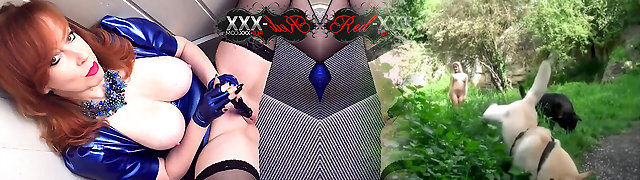Red Xxx playing with herself in a latex dress