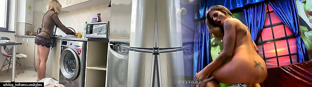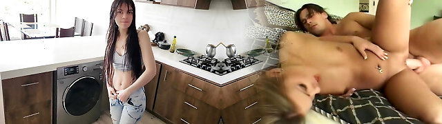 His stepsister needs help with the washing machine, he helps her undress and pokes her Taut jeans
