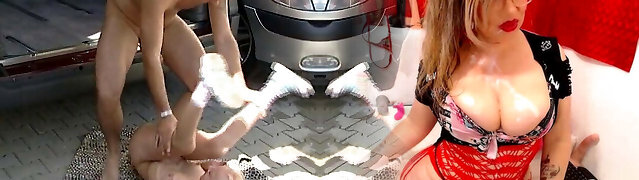 Mature mom gets shamelessly romped in the donk in a public parking lot