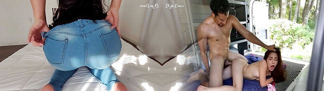stepmom in pantyhose pulverizes herself in the camper in the mall parking lot - public squirt
