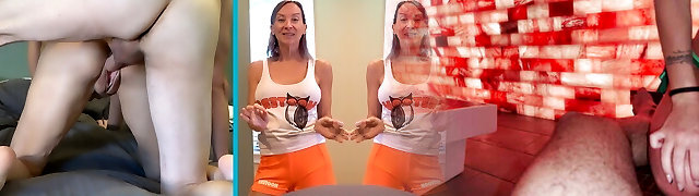 Cumming on horny MILF's tits in stocking