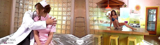 Asian Cougar Nurse in Nylon Pantyhose seduce to Creampie Fuck