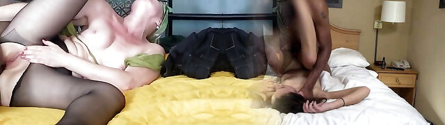Cuck Videos Wife Wearing Tan Stocking and Panties Fucking Young Man