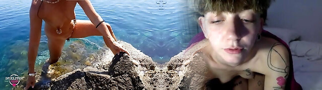 nippleringlover horny milf fucking outdoors in the sea by the beach pierced nipples and gash