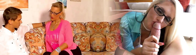 Chubby german housewife lures younger idiot guy with boobs