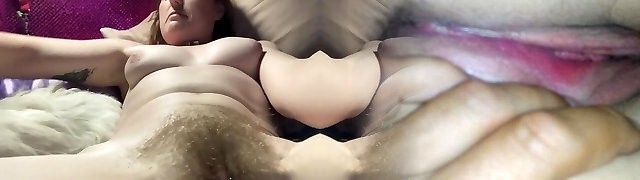 Big dick stuffing a heavily pierced hairy mature pussy