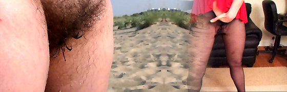Hairy mature analingus on the beach