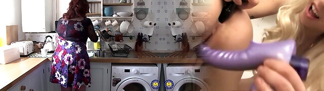 Redhead BBW amateur mature Milf masturbates in the kitchen