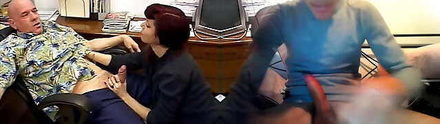 Mature redhead in glasses sucks a spear and takes a ride on it