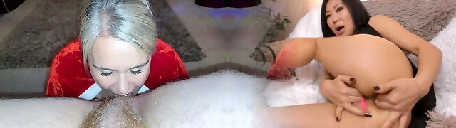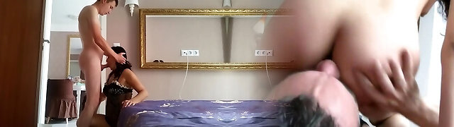 Mature mom licks ass and pussy of hot young damsel