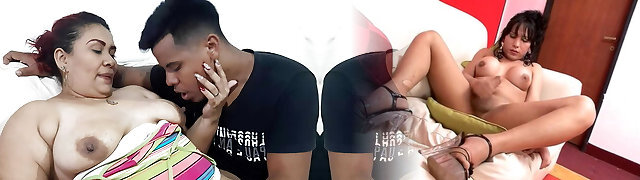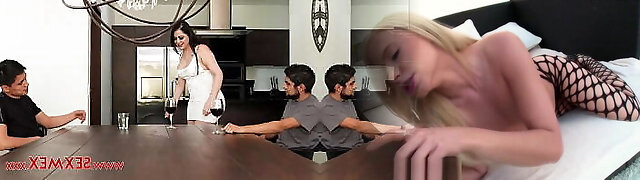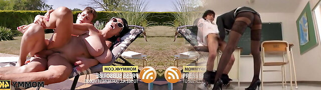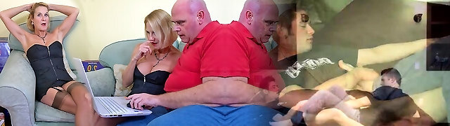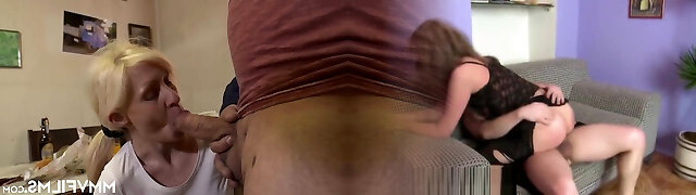 Mommy and her chubby girlfriend fuck son-in-law without mercy