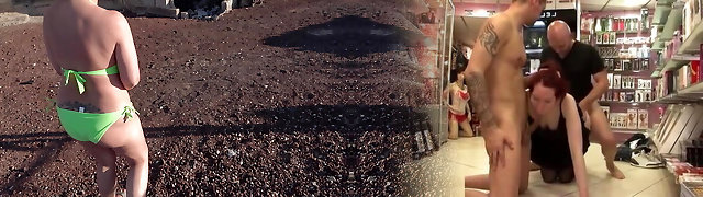 Black-haired BBW gets her pussy boinked by tattooed guy in public